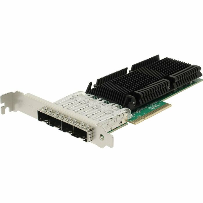 Высокопроизводительный четырехпортовый сетевой адаптер для серверов и дата-центров, построенный на чипсете Intel E810, с поддержкой современных стандартов и функций для облачных платформ, виртуализации, корпоративных сетей и задач Big Data.