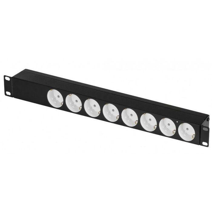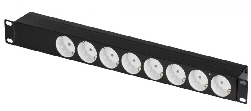 - Блок электрических розеток TLK-RS08M1N-BK выполнен в 19” стандарте с высотой 1U. Блок состоит из 8 «евророзеток» (Schuko), соединенных латунными шинами питания марки Л63Т с сечением 6 мм2 каждая