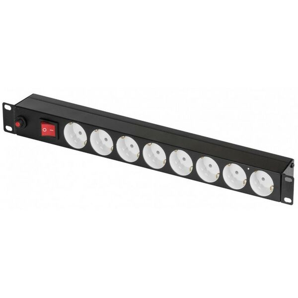 Блок электрических розеток TLK-RS08MF1-BK выполнены в 19” стандарте с высотой 1U. Блок состоит из 8 «евророзеток» (Schuko), соединенных латунными шинами питания марки Л63Т с сечением 6 мм2 каждая. Блок снабжен фильтрующим элементом на основе варистора. Блок розеток TLK-RS08MF1-BK имеет выключатель и предохранитель для защиты по току. Суммарный ток нагрузки — не более 10А. В задней части блока имеется ввод с разъемом IEC-60320 C14 для подключения шнура питания (поставляется отдельно). Корпус изготовлен из оцинкованной стали 0,7 мм, все металлические элементы заземлены, также имеется элемент крепления внешнего заземления (отверстие с резьбой М4).