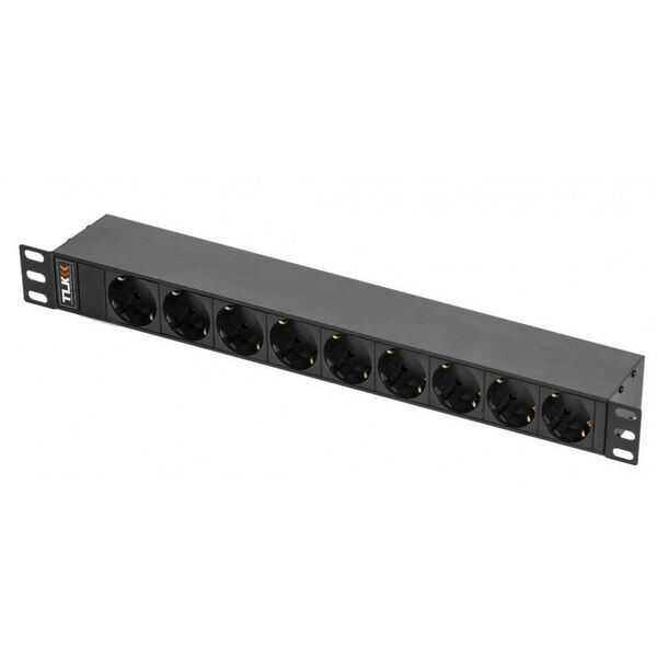 - Блок электрических розеток выполнен в виде корпуса с креплением 19” и высотой 1U. Корпус изготовлен из алюминиевого профиля толщиной 1,2 мм, все элементы блока розеток имеют единый контур заземления