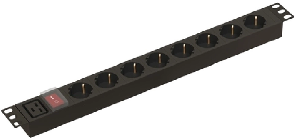 Блок электрических розеток TLK TLK-RSC08-MTF-01-BK 19", 8 гнезд "евророзетка", макс. нагрузка 10 А, без шнура питания, вход С14 + предохранитель 10 А, перекидной выключатель, металлический корпус, макс. мощность 2500 Вт, 490*44.4*68 мм