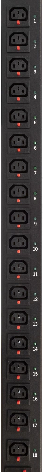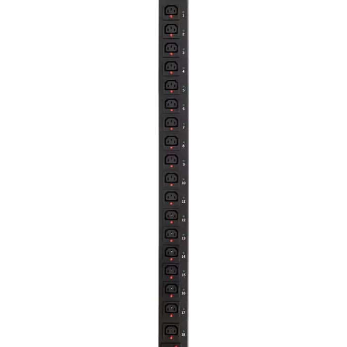 Блок контролируемых электрических розеток TLK TLK-PPI-MN-A36B06-M51-WCE-BK TLK, Серия MN (Monitored), вертикальный, 36 розеток C13, 6 розеток C19, макс. нагрузка 32А, шнур питания 3 м
