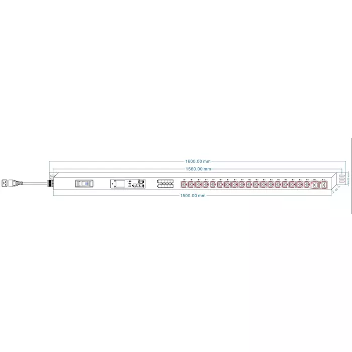 Блок электрических розеток TLK TLK-PSA36B06-MD-05-BK вертикальный, 36 гнезд C13, 6 гнезд С19, макс. нагрузка 32 А, шнур 2.5 м, вилка 1-фазная 32А 250В, IEC 60309, металлический корпус, макс. мощность 7000Вт. Ш1658хВ80хГ48 мм