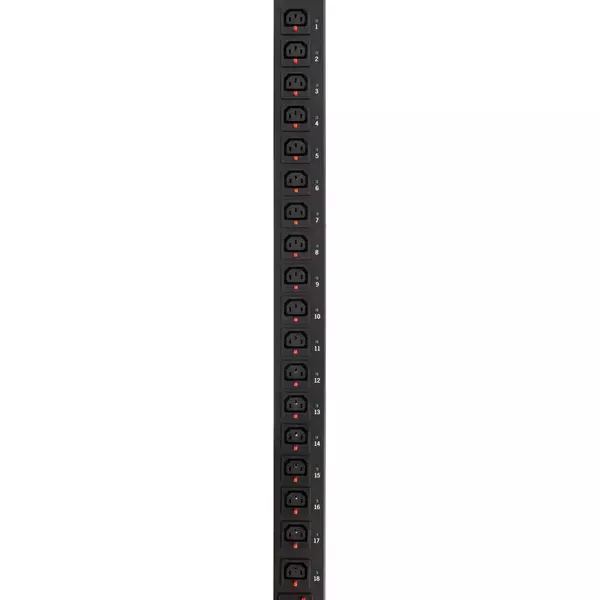 Блок контролируемых электрических розеток TLK TLK-PPI-MN-A36B06-M51-WCE-BK TLK, Серия MN (Monitored), вертикальный, 36 розеток C13, 6 розеток C19, макс. нагрузка 32А, шнур питания 3 м