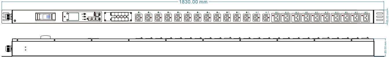 Блок контролируемых электрических розеток TLK TLK-PPI-MN-A36B06-M51-WCE-BK TLK, Серия MN (Monitored), вертикальный, 36 розеток C13, 6 розеток C19, макс. нагрузка 32А, шнур питания 3 м