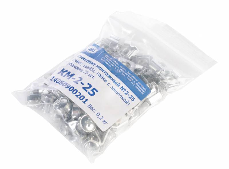 Комплект монтажный ЦМО КМ-2-25 № 2 (винт, шайба, гайка с защелкой), упаковка 25 шт.