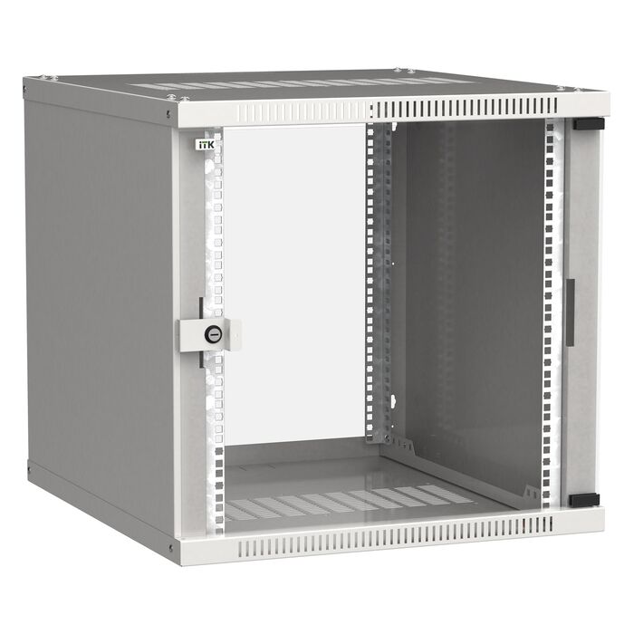Шкаф коммутационный Linea WE настенный ITK LWE3-09U64-GF 9U 600x450мм пер.дв.стекл направл.под закл.гайки 50кг серый 400мм 200град. 450мм IP20 сталь