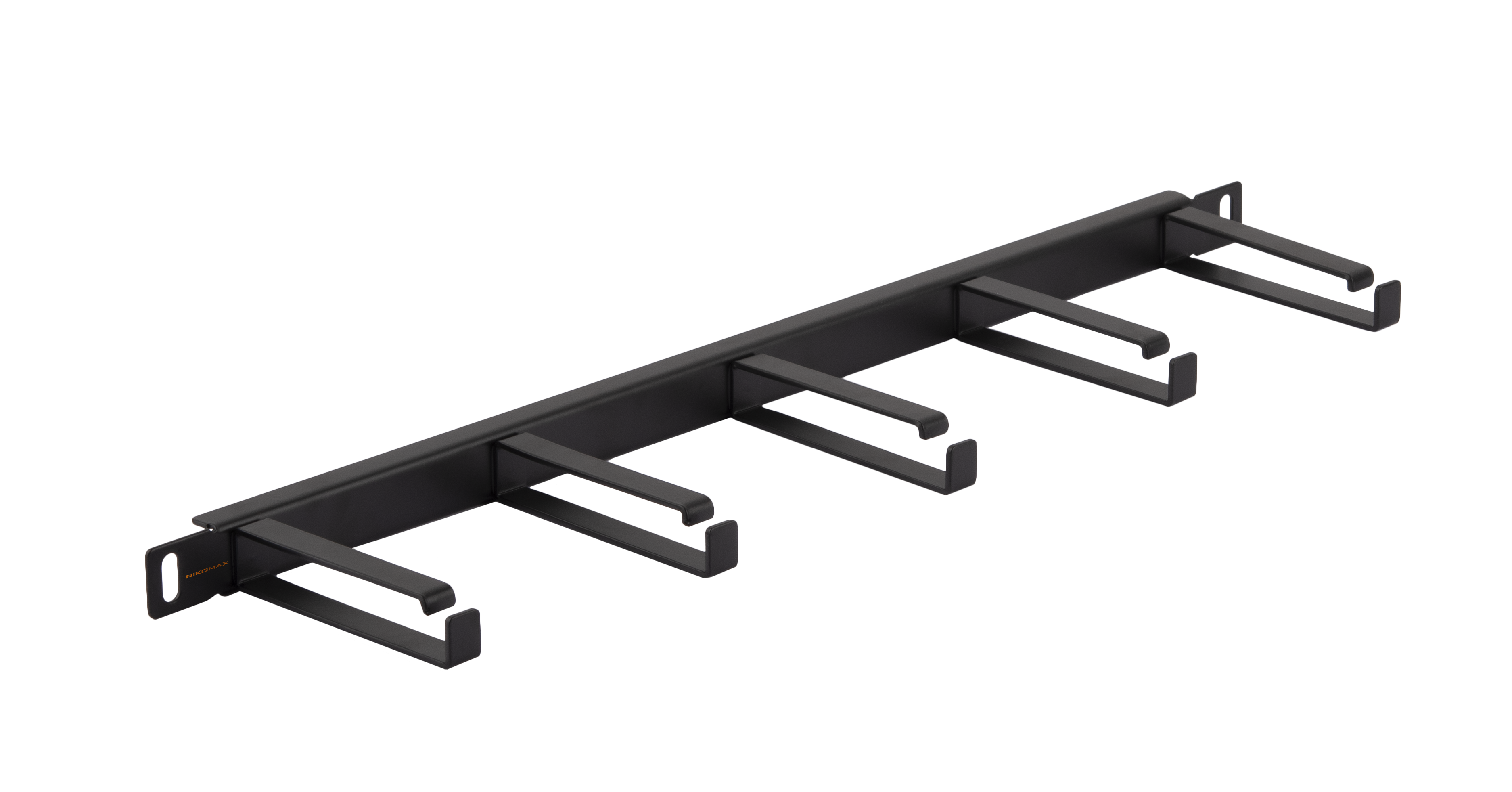 Кабельный органайзер NIKOMAX NMC-OK800-HU-BK-2 устанавливается в шкафы или стойли 19" и состоит из стального (1,6 мм) основания, на которое установлены металлические кольца толщиной 2 мм и полезной глубиной 80 мм. Особенностью данного органайзера является его высота 0,5 U, которая позволяет сохранить полезное пространство.