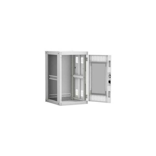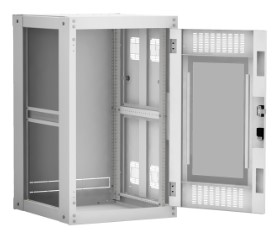 Наличие у шкафа двери с углом открытия 180 градусов и съемных боковых панелей и задней панели, предоставляет доступ для установки и обслуживания оборудования с четырех сторон.