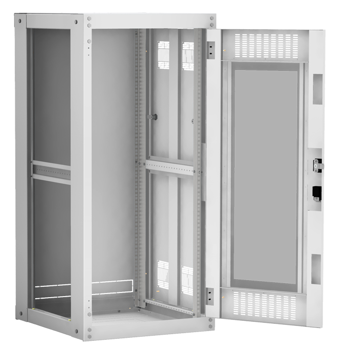 Наличие у шкафа двери с углом открытия 180 градусов и съемных боковых панелей и задней панели, предоставляет доступ для установки и обслуживания оборудования с четырех сторон.