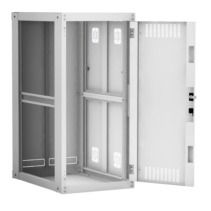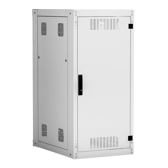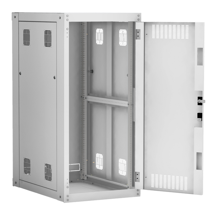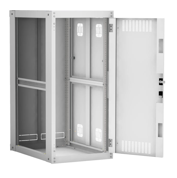 Наличие у шкафа двери с углом открытия 180 градусов и съемных боковых панелей и задней панели, предоставляет доступ для установки и обслуживания оборудования с четырех сторон.