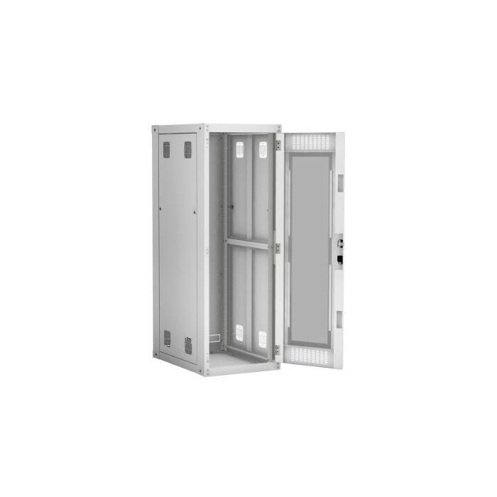 Наличие у шкафа двери с углом открытия 180 градусов и съемных боковых панелей и задней панели, предоставляет доступ для установки и обслуживания оборудования с четырех сторон.