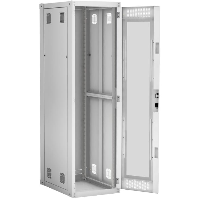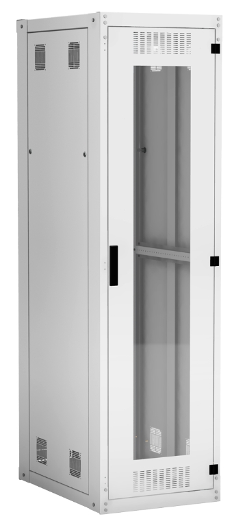 Наличие у шкафа двери с углом открытия 180 градусов и съемных боковых панелей и задней панели, предоставляет доступ для установки и обслуживания оборудования с четырех сторон.