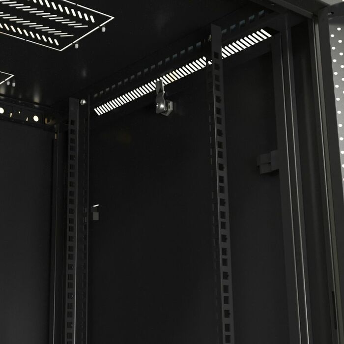| Подробное описание материалов | Толщина стальных компонентов: рама каркаса, нижняя панель, задняя панель, передняя дверь, боковые панели, верхняя панель - 1,2 мм; горизонтальный опорный уголок - 2,0 мм; 19" монтажный профиль - 2,0 мм |