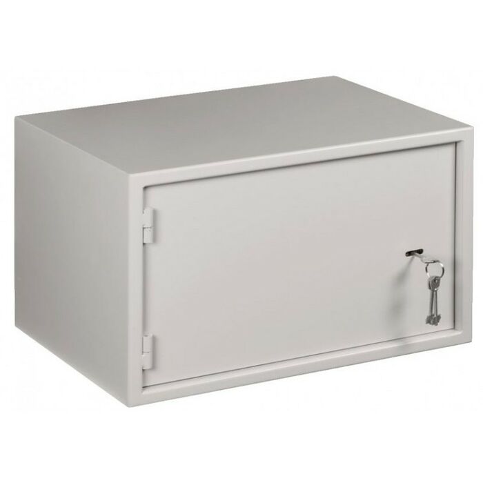 - Для установки шкафа на стену, в задней стенке его выполнено 4 крепёжных отверстия диаметром 8 мм. Максимальная допустимая распределенная нагрузка на шкаф составляет 100 кг. Покрытие шкафа – порошковое, ударопрочное, полимерно-эпоксидное, цвет светло-серый (RAL 7035)