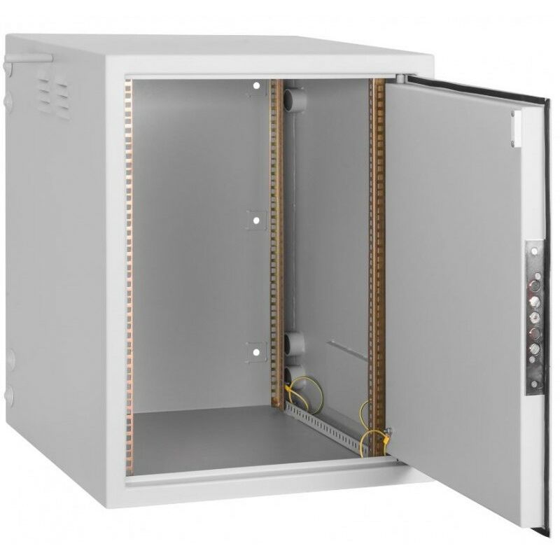 - Настенные антивандальные шкафы серии Secure (TWS) — предназначен для защиты от несанкционированного доступа и кражи, установленного в них телекоммуникационного оборудования. Типичное использование шкафа - на чердаках, в подвалах и коммунальных зонах зданий. Особенностью настенных шкафов серии TWS является антивандальная конструкция, изготовленные из листовой стали 2 мм корпус и дверь, а так же замок повышенной надежности и секретности. Конструкция корпуса и двери — цельносварная, усиленная. Крепление шкафа к стене осуществляется через усиленные монтажные отверстия. Мощная, двухслойная дверь утоплена внутрь, что исключает возможность силового открытия при помощи фомки. Дверь снабжена 5-ригельным замком повышенной секретности. (В комплект входят 4 ключа). Шкаф снабжен 4-мя оцинкованными монтажными направляющими, регулируемыми по глубине, что позволяет устанавливать достаточно тяжелое и габаритное оборудование. На боковых стенках имеются по 4-е защищенных кабельных ввода диаметром 36 мм, закрытые резиновыми заглушкам. Жалюзийные вентиляционные отверстия, расположены на разных уровнях боковых стенок, обеспечивают хорошую вентиляцию устанавливаемого оборудования. С внутренней стороны шкафа вентиляционные отверстия имеют дополнительную защиту в виде стальных кожухов. На одной из боковых стенок внутри шкафа предусмотрено посадочное место под установку вентилятора размером 120х120х38 мм. Все токопроводящие части шкафа заземлены между собой. Для удобства переноски и монтажа предусмотрены легкосъемные ручки. При необходимости размещения шкафа на пол, в основании шкафа имеются отверстия для установки регулируемых по высоте опор. (В комплект поставки не входят). Антикоррозионное покрытие выполнено ударопрочной порошковой краской. Шкаф выполнен в системе несущих конструкций серии 482,6 мм ГОСТ 28601-90 (19-дюймовому стандарту IEC 297). Максимальная допустимая распределенная нагрузка на шкаф серии TWP составляет 150 кг. Степень защиты шкафа составляет IP 31. Шкаф поставляется в собранном виде.