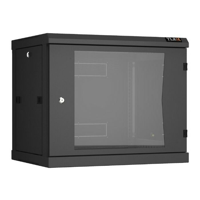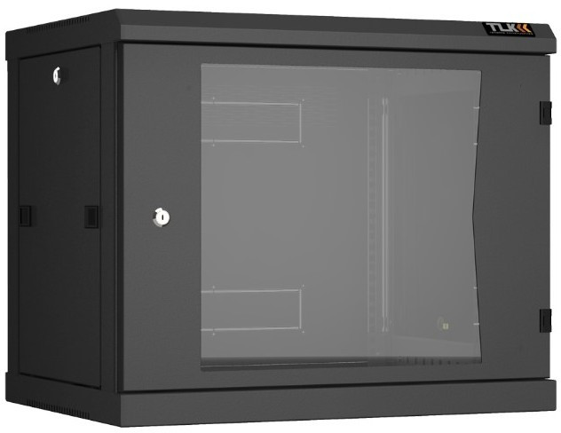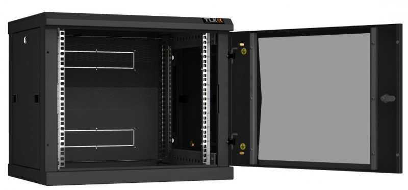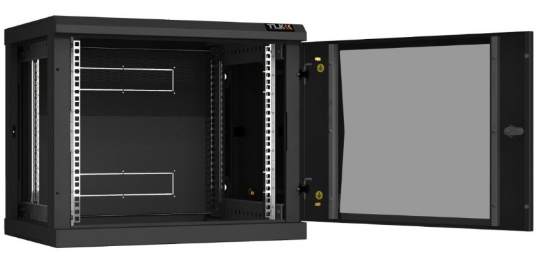 - Особенностью настенных шкафов серии TWC-R является сборно-разборная конструкция. Удобство сборки обеспечивается предустановленными комплектующими и фурнитуры. Дверь шкафа может быть цельнометаллическая, либо со вставкой из ударопрочного тонированного в массе стекла. Имеется возможность навесить дверь с правой либо с левой стороны. Дверь с углом открытия более 180 градусов и съемные боковые стенки, предоставляют удобный доступ в шкаф с трех сторон для установки и обслуживания оборудования. Фиксация двери и боковых стенок осуществляется точечными замками, при этом боковые стенки дополнительно оборудованы защелками быстрой фиксации. Задняя стенка спроектирована для двусторонней установки с выламываемыми заглушками кабельных вводов 270х56 мм. Для установки оборудования в шкафу предусмотрены две пары направляющих 19" с возможностью регулировки по глубине. Цифровая маркировка юнитовой (U) перфорации направляющих 19", создает дополнительное удобство для размещения оборудования. Вентиляцию шкафа обеспечивает перфорация основания и крыши. В крыше вместо съемной перфорированной заглушки, закрывающей отверстие 440х215 мм, возможна установка в качестве аксессуара одного из блоков вентиляторов TLK на два вентилятора для настенных шкафов. Вводные кабельные отверстия 270х56 мм в основании и крыше, закрытые съемными цельнометаллическими заглушками, можно оборудовать в качестве аксессуара щеточными вводами TLK. Количество кабельных вводов: в основании - 1 шт (заглушен), в крыше - 1 шт (заглушен), в задней стенке - 1 шт (выламываемый). Для крепления шкафа к стене в задней раме выполнены четыре монтажных отверстия, под анкерные болты М8. Для шкафа предусмотрены аксессуары TLK предоставляющие возможность, размещение шкафа на полу на регулируемых опорах TLK, а также изменение конструкции шкафа из односекционного в двухсекционный при помощи пристенной поворотной секции TLK. Все токопроводящие части шкафа заземляются между собой, образуя единый контур заземления. Антикоррозионное покрытие шкафа выполнено ударопрочной порошковой краской.