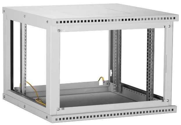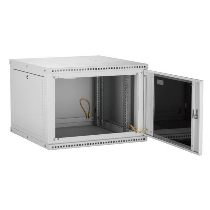 Настенные шкафы серии Lite (TWI) — это рациональное решение для размещения малых объемов телекоммуникационного оборудования, внутри жилых, офисных и производственных помещений. Настенные шкафы используют там, где применение напольных шкафов нецелесообразно. Например, при ограниченной площади помещения или при организации ЛВС с небольшим количеством рабочих мест. Особенностью настенных шкафов серии TWI является: надежная сборная конструкция, для удобства траспортировки, наличие съемных боковых стенок, двери с большим углом открытия позволяют при необходимости осуществлять доступ к оборудованию с трех сторон. Сборно-разборная конструкция шкафа, состоящая из малого набора конструктивных элементов обеспечивает надежный конструктив и простоту сборки. Крепление шкафа к стене осуществляется через монтажные отверстия в задней стенке шкафа. (Крепеж не входит в комплект поставки). Дверь шкафа снабжена замком и может быть выполнена из стального листа с перфорацией или со вставкой из ударопрочного, тонированного в массе стекла. Имеется возможность навесить дверь с правой или с левой стороны. Угол открытия двери — 180 градусов. Для дополнительного удобства монтажа и обслуживания устанавливаемого оборудования, конструкцией предусмотрены легкосъемные боковые стенки, в закрытом положении фиксируются замками. Для установки оборудования стандарта 19", шкаф оснащен одной парой монтажных направляющих в комплекте с юнитовой наклейкой (шкаф глубиной 600 мм оснащается двумя парами монтажных направляющих). Глубину установки оборудования на монтажных направляющих внутри шкафа можно изменять с шагом 25 мм. Перфорация шкафа обеспечивает хорошую вентиляцию установленного оборудования. Возможна установка вентиляторного блока в крышу и основание шкафа, для этого предусмотрены выламываемые заглушки. В шкаф глубиной 350 мм устанавливаются вентиляторные блоки с 1-м вентилятором, а в шкаф глубиной 450 и 600 мм устанавливаются вентиляторные блоки с 2-я вентиляторами. Имеется по 1-му кабельному вводу в крыше и в основании шкафа, выполнены они в виде прямоугольных выламываемых заглушек 270х56 мм. Все токопроводящие части шкафа заземлены между собой. Антикоррозионное покрытие выполнено ударопрочной порошковой краской. Шкаф выполнен в системе несущих конструкций серии 482,6 мм ГОСТ 28601-90 (19-дюймовому стандарту IEC 297). Максимальная допустимая распределенная нагрузка на шкаф серии TWI составляет 40 кг. Степень защиты шкафа составляет IP 20. Шкаф поставляется в разобранном виде, в одной коробке.