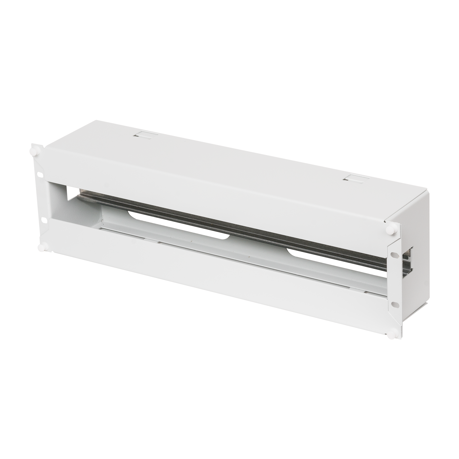 Панель 19" с DIN-рейкой, 3U предназначена для организации ввода внешнего электропитания в шкафы и стойки. Позволяет разместить до 25 автоматов шириной 17,5 мм электропитания по стандарту DIN 43880. Панель 19" с DIN-рейкой, 3U состоит из корпуса с установленной в нём DIN-рейкой длиной 443 мм и двух легкосъёмных крышек, установленных сверху и снизу. Корпус на торцах имеет крепёжные отверстия для монтажа панели на 19” направляющих. Сзади корпуса выполнены 4 паза (150х32 мм) для подвода-вывода кабелей. На передней части панели сверху и снизу установлены легкосъёмные крышки на защёлках. Конструкция позволяет беспрепятственно осуществлять выводы кабелей.