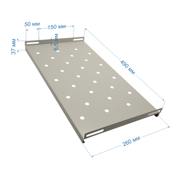 Полка для телекоммуникационных шкафов ST-NC9U600 и ST-NC12U600 предназначена для размещения на ней внутри шкафа оборудования, приборов и аппаратуры, не имеющих кронштейнов и уголков крепления на 19" профили. Материал: холоднокатаная сталь (SPCC)