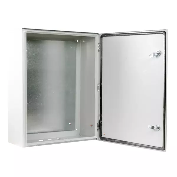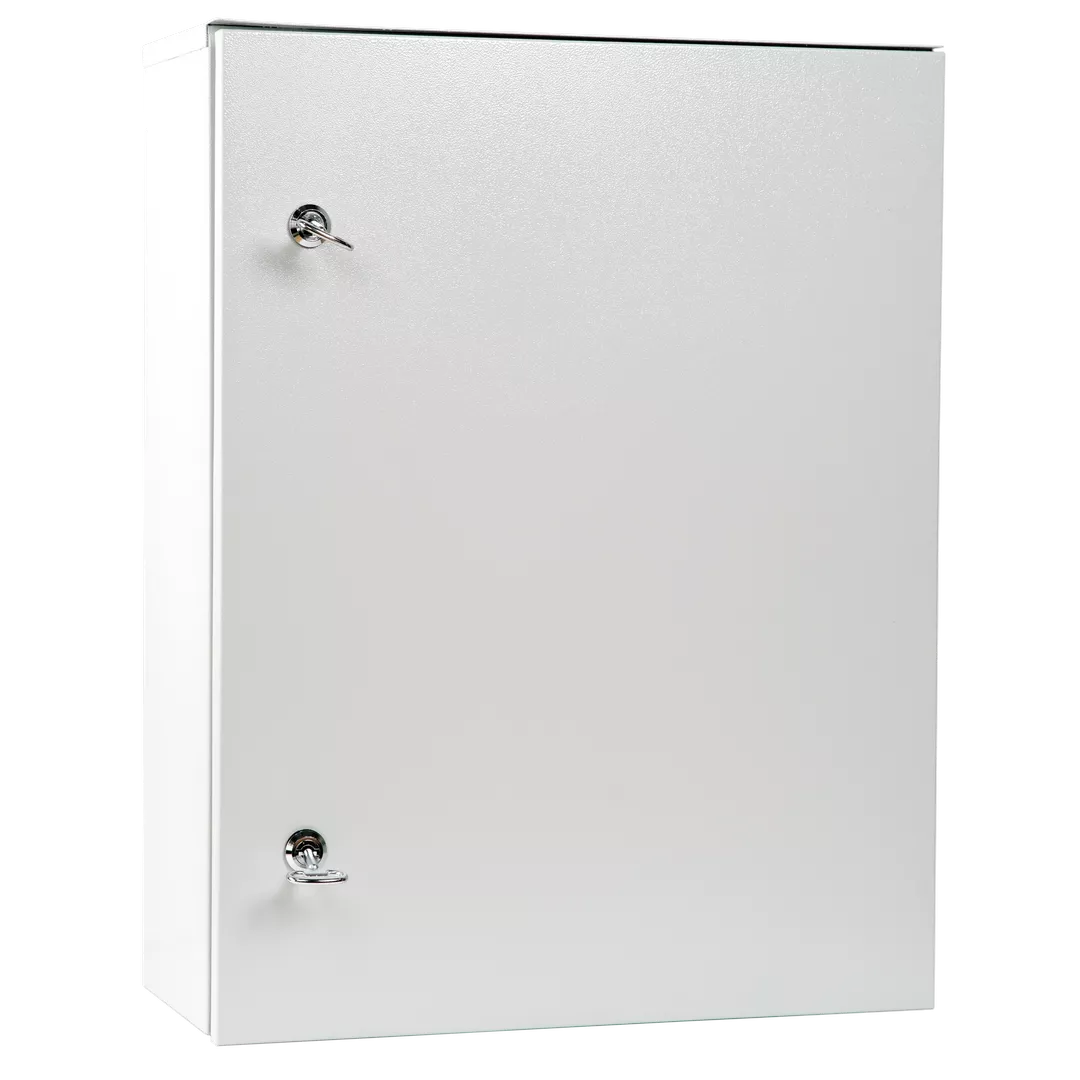 Степень защиты: IP54 Толщина металла: 1-1,2 мм  Цвет: RAL 7035  Комплектация: замок, 2 ключа, оцинкованная монтажная панель, гермовводы  Габаритные...