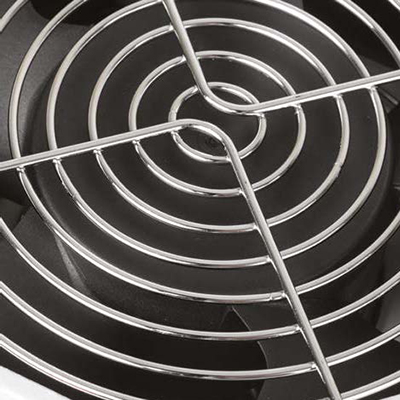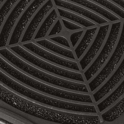 Вентиляторы закрыты решетками с обеих сторон. Блоки с маркировкой «F» также имеют встроенные фильтры для предотвращения засасывания пыли во внутреннее пространство шкафа. Вентиляторные блоки конструктивно выполнены с монтажным фланцем для удобства установки. Несущая конструкция вентиляторных блоков выполнена из 2 мм стали. Антикоррозионное и декоративное покрытие выполнено ударопрочной порошковой краской черного цвета.