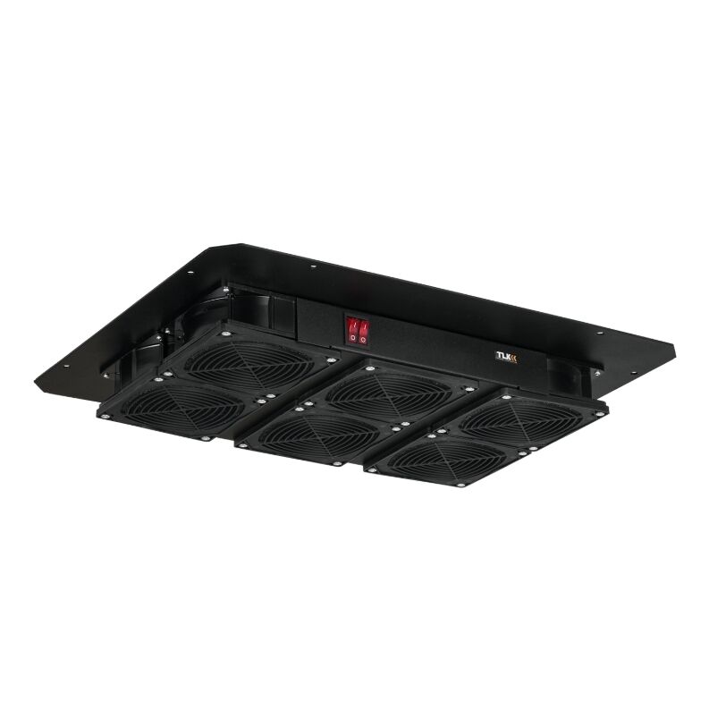 Вентиляторный блок предназначен для принудительного охлаждения активного оборудования, установленного в телекоммуникационном шкафу, путем отвода теплых воздушных масс из внутреннего объем шкафа. Блок устанавливается в специальные ниши на крыше или в основании напольных шкафов TLK и совместимы с сериями TFE, TFL, TFR, TFA. При этом шкафы глубиной (600 мм) предусматривают только верхнее размещение вентиляторного блока.