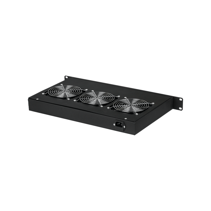 Вентиляторная полка предназначена для создания дополнительного потока воздуха в местах сосредоточения активного оборудования в телекоммуникационном шкафу. Вентиляторные полки можно устанавливать в напольные шкафы и стойки в соответствии с таблицей совместимости аксессуаров. Питание вентиляторной полки осуществляется с помощью подключения шнура питания к сети с напряжением 220 В, 50 Гц. Разъем питания на вентиляторном блоке типа IEC-60320 C14. Вентиляторная полка выполнена в 19” стандарте. Несущая конструкция вентиляторной полки выполнена из 2 мм стали. Вентиляторы закрыты решетками с обеих сторон. Включение/выключение полки осуществляются пользователем. Полка крепятся к направляющим с помощью комплекта крепежа. Антикоррозионное покрытие выполнено ударопрочной порошковой краской черного цвета.