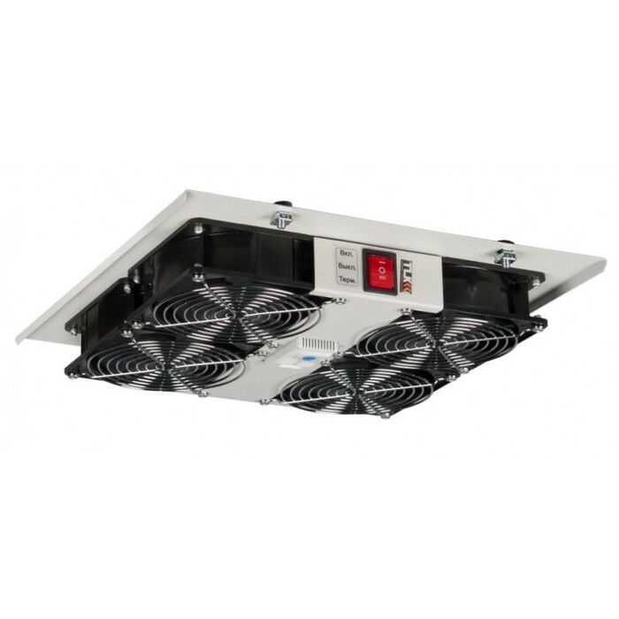 - Питание вентиляторного блока на 4 вентилятора осуществляется с помощью подключения шнура питания к сети с напряжением 220 В, 50 Гц. На тыльной стороне корпуса находится входной разъём питания типа IEC 60320 C14 с предохранителем, для защиты от перегрузки. Для подачи электропитания используется кабель с вилкой IEC 60320 C13 (приобретается отдельно). Антикоррозионное покрытие выполнено ударопрочной порошковой краской светло-серого цвета.