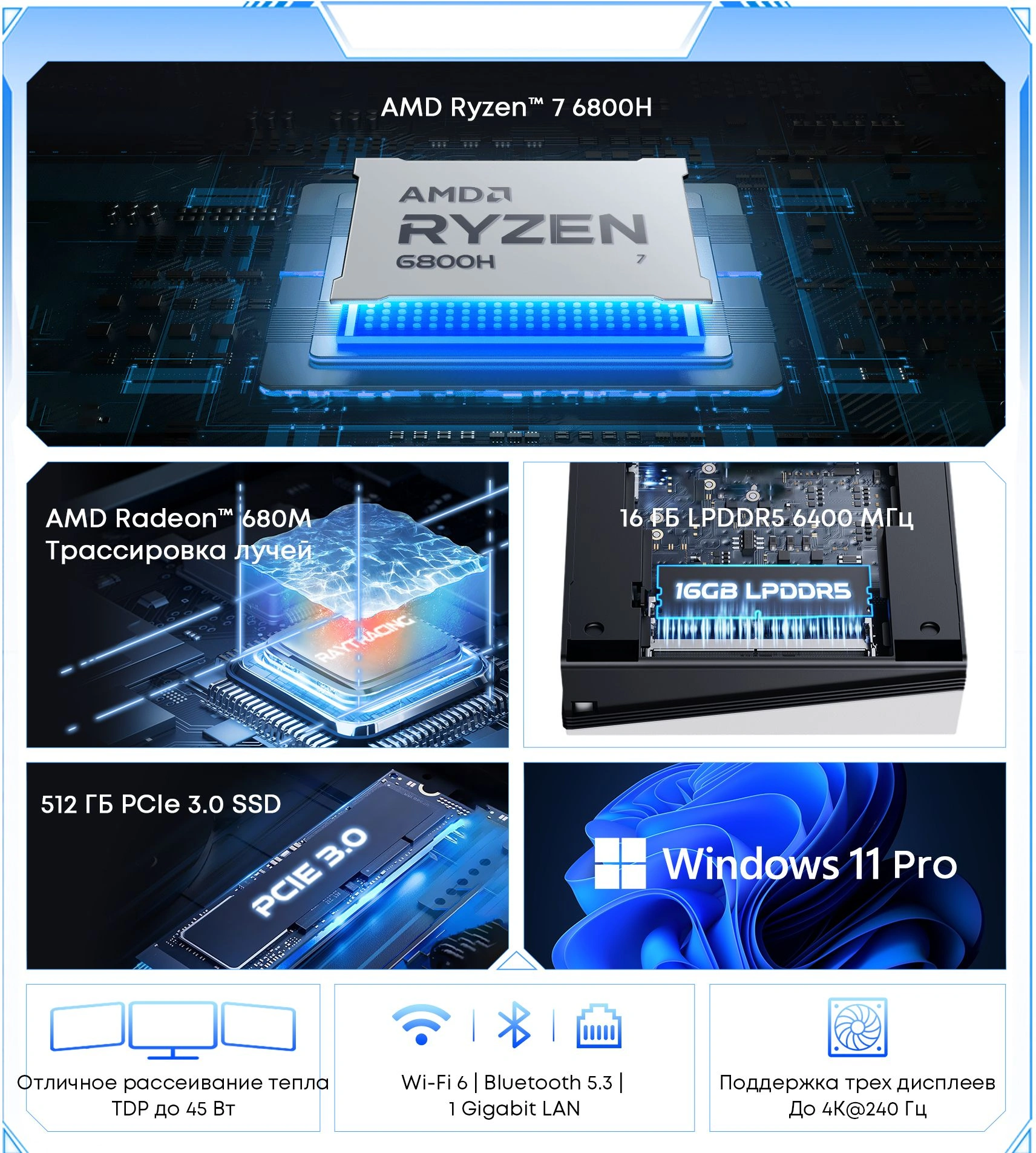 | Процессор | AMD Ryzen 7 6800H 3.2ГГц |