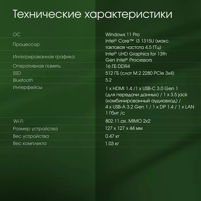 2xSO-DIMM DDR4; SSD M.2 2280 PCIe Gen3 x4 Характеристики Основные характеристики Модель Minimax U1 Процессор Процессор Intel Core...