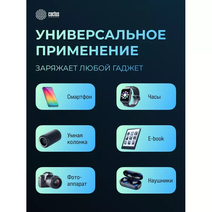 Характеристики Основные характеристики Тип Мобильный аккумулятор Количество одновременно заряжаемых устройств 3 Назначение для...
