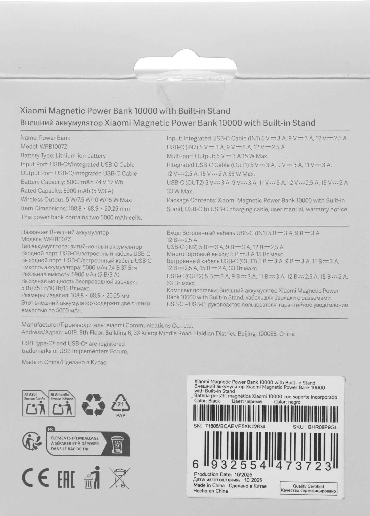 | Дополнительно | встроенная подставка для смартфона, встроенный кабель, индикатор уровня заряда, магнитное позиционирование |