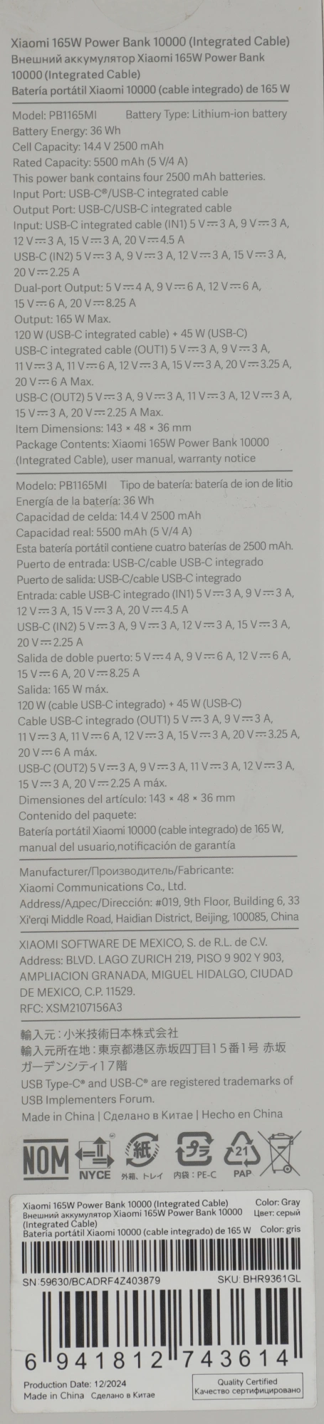 | Режимы напряжения и силы тока | Type-C1: 5В=3А, Type-C1: 9В=3А, Type-C1: 11В=3А, Type-C1: 11В=6А, Type-C1: 12В=3А, Type-C1: 15В=3А, Type-C1: 20В=3.25А, Type-C1: 20В=6А, Type-C2: 5В=3А, Type-C2: 9В=3А, Type-C2: 11В=3А, Type-C2: 12В=3А, Type-C2: 15В=3А, Type-C2: 20В=2.25А |