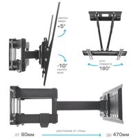 Кронштейн для телевизора Kromax GALACTIC-57 черный 32"-75" макс.60кг настенный поворотно-выдвижной и наклонный [90218]