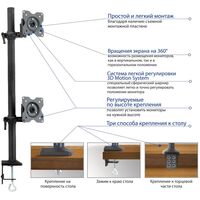 Кронштейн для мониторов ЖК Kromax OFFICE-14 черный 15"-32" макс.10кг настольный поворот и наклон [90804]