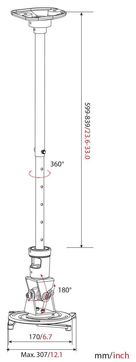 | Особенности | Инструменты в комплекте; Возможность быстрого снятия; Установочные отверстия: 8-30.7 см. Выдвижная штанга сделана из стали, остальные части корнштейна из алюминия. |