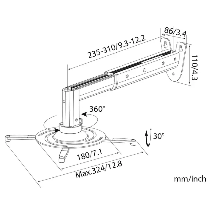 | Угол наклона | -30/+30 ° |