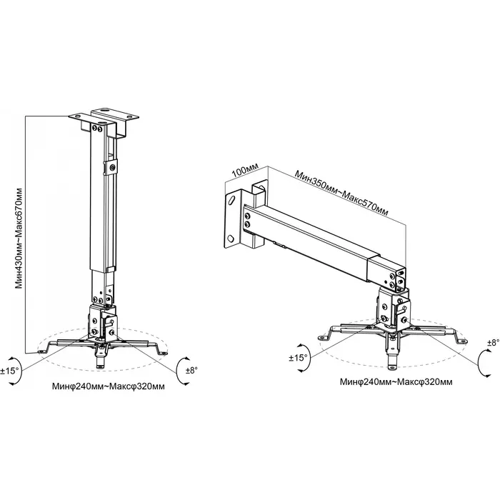 | Расстояние от стены / потолка (макс) | 67 см |