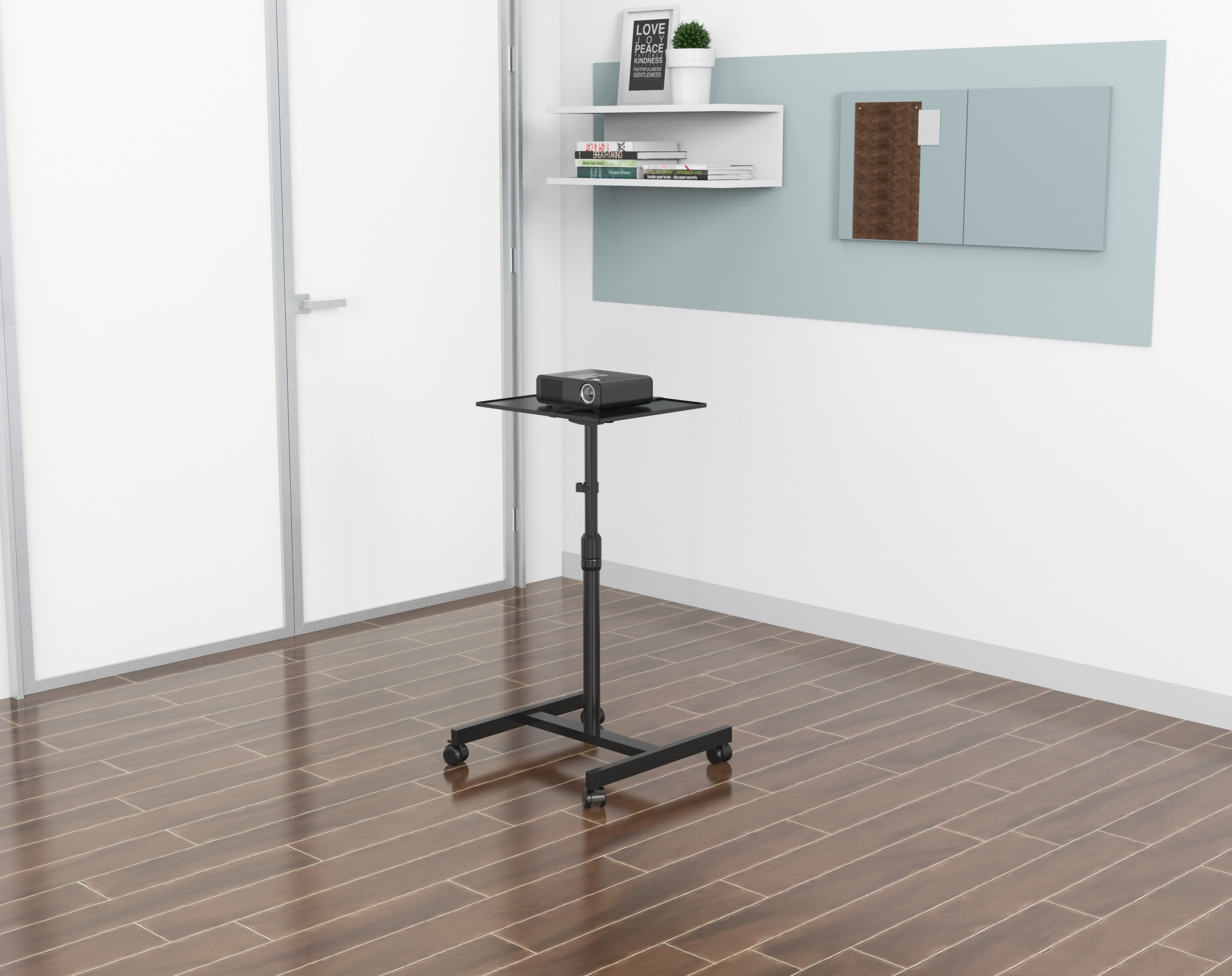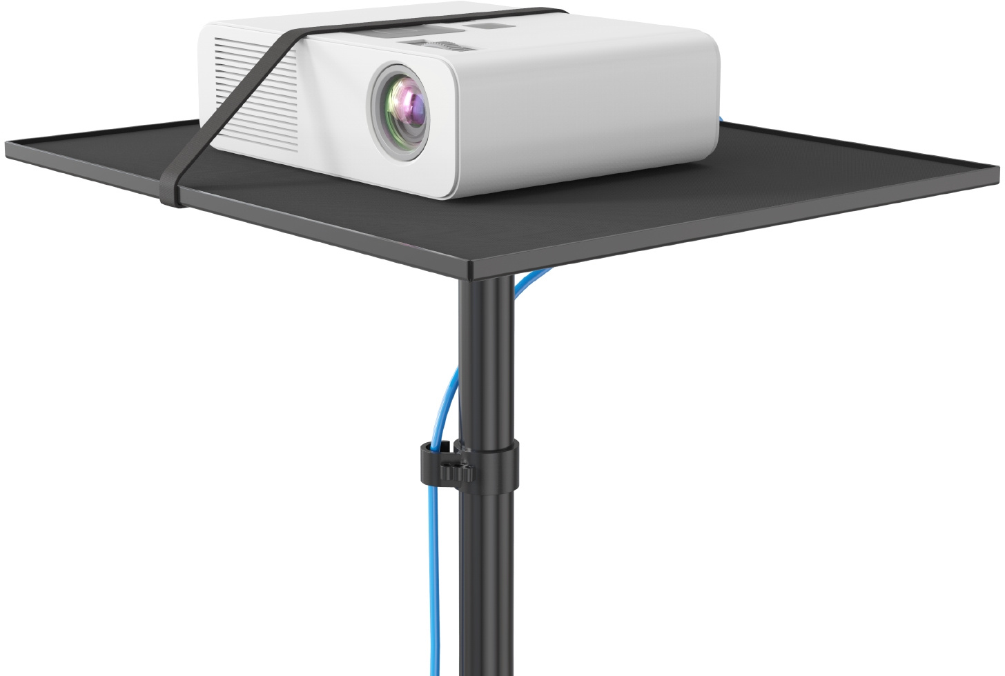 Столики для проекторов идеально подходят для разнообразных целей и могут использоваться в школьных классах, библиотеках и других помещениях, где требуется установка демонстрационного оборудования. Столик оснащен колесами с блокировкой, надежным и устойчивым основанием, что позволяет быстро и легко перемещать проектор. Мобильность столика помогает также облегчить фокусировку проектора, поскольку при необходимости всю конструкцию целиком можно перемещать поближе к экрану или от него. Стол оснащен держателем для прокладки проводов и эластичным ремнем для фиксации проектора.