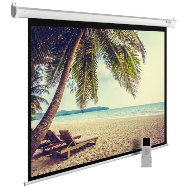 - Производитель предлагает для этого экрана прямой тип проекции. Покрытие имеет белый цвет, что способствует корректной цветопередаче. Поверхность матовая, поэтому она не отражает электрический и солнечный свет, что не искажает изображение