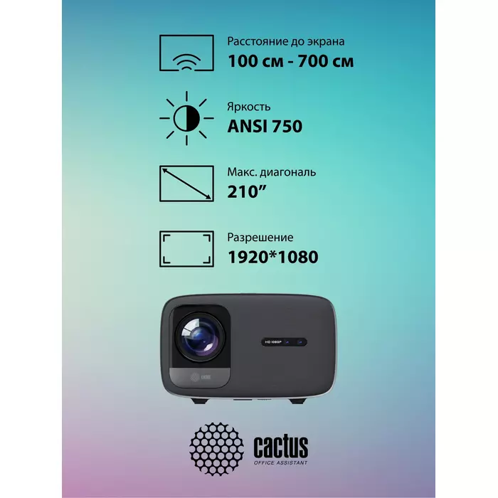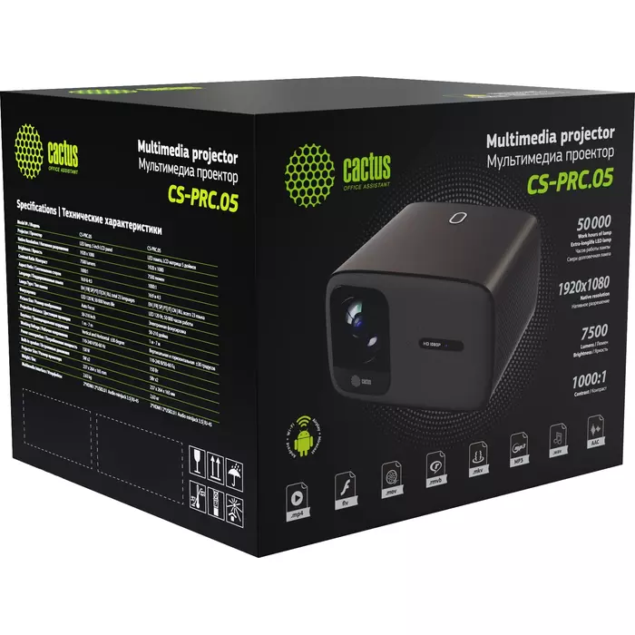 Проектор Cactus CS-PRC.05B.WUXGA-A LCD, 7500Lm, 750Lm ANSI, 1920x1080, 1000:1, 50000 часов, 2xUSB, 2xHDMI, 1.78кг