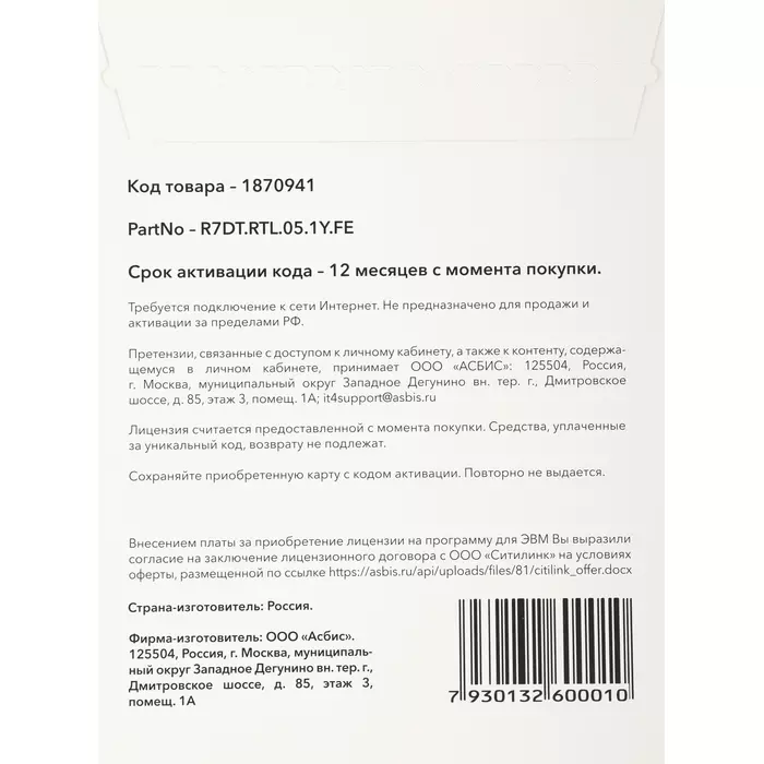 Наличие товара Р7-Офис Для семьи [R7DT.RTL.05.1Y.FE]