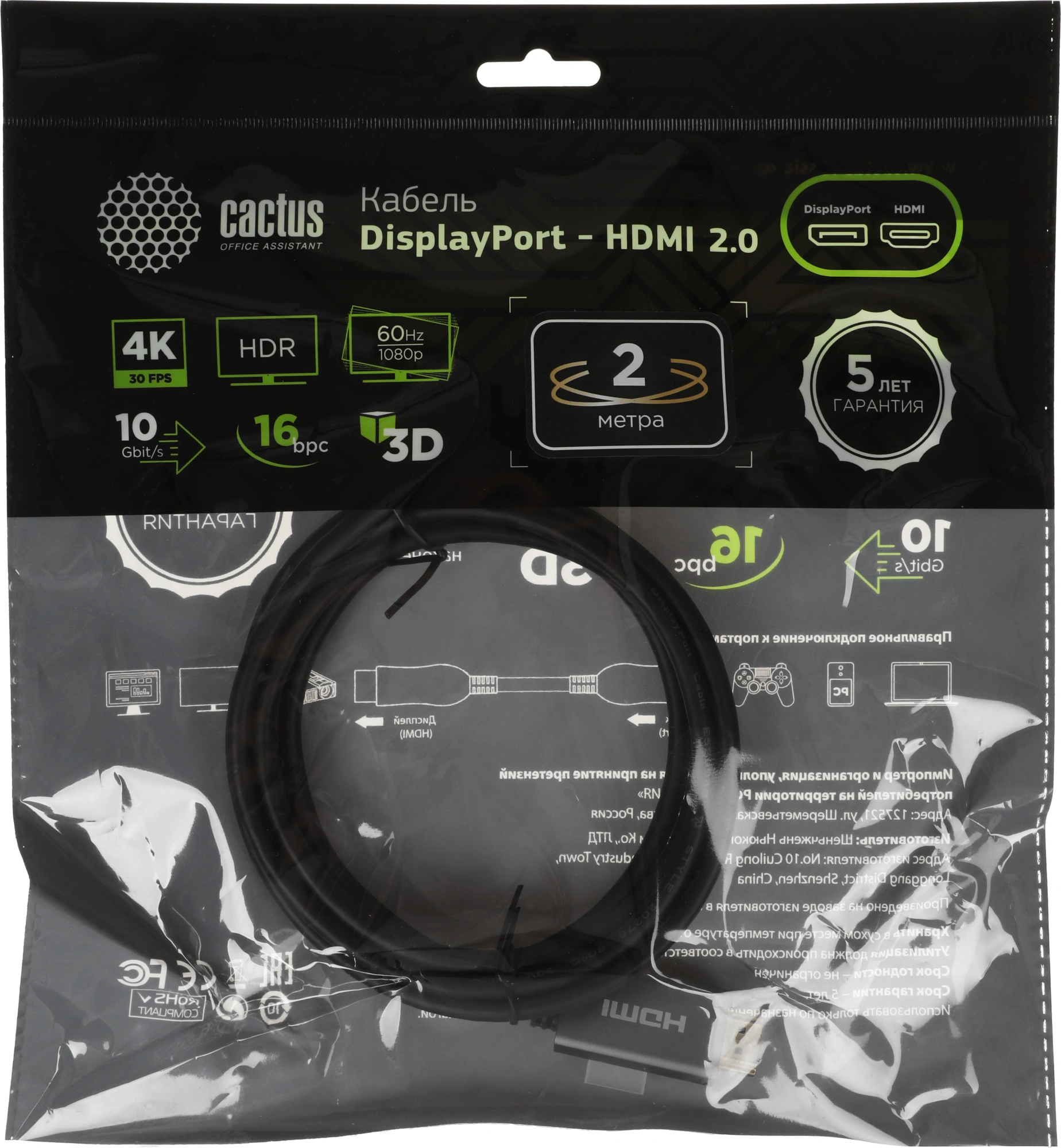 Описание Cactus CS-DP-HDMI-1.2-2