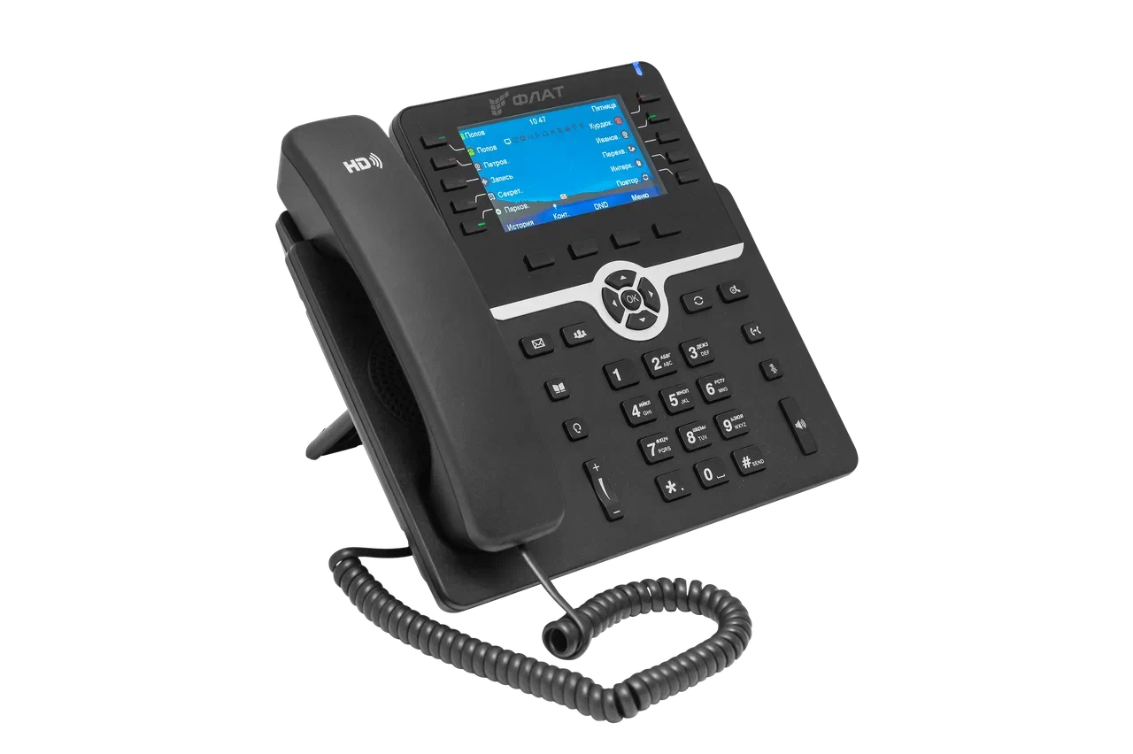 IP телефон Flat-Phone В10P - современный IP-телефон отечественного производства, оснащенный 4,3-дюймовым цветным LCD-дисплеем, HD полнодуплексным динамиком и микрофоном, обеспечивает комфортные голосовые коммуникации каждый день.