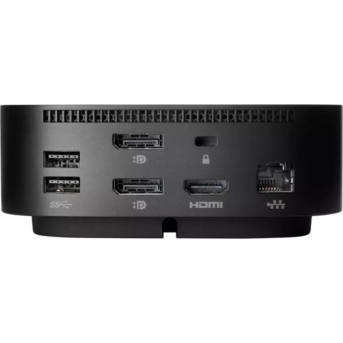 HP USB-C Dock G5 - эта универсальная док-станция создавалась для обеспечения широкой совместимости, поэтому она работает с ноутбуками HP и других производителей, оснащенными разъемами USB-C и Thunderbolt. Док-станция с расширенными функциями управления сетью поможет защитить ваш ноутбук и удаленно управлять им. Подсоедините к этой док-станции все свои аксессуары и до трех мониторов. Затем просто подключите ее к ноутбуку с помощью одного кабеля USB-C, чтобы получить доступ ко всем своим устройствам и одновременно заряжать компьютер. Освободите свой стол с помощью компактной док-станции, которая занимает пространство 122 х 122 мм. Экономьте время - док-станция отправляет обновления микропрограммного обеспечения на ваш ноутбук, даже если они не подключены.