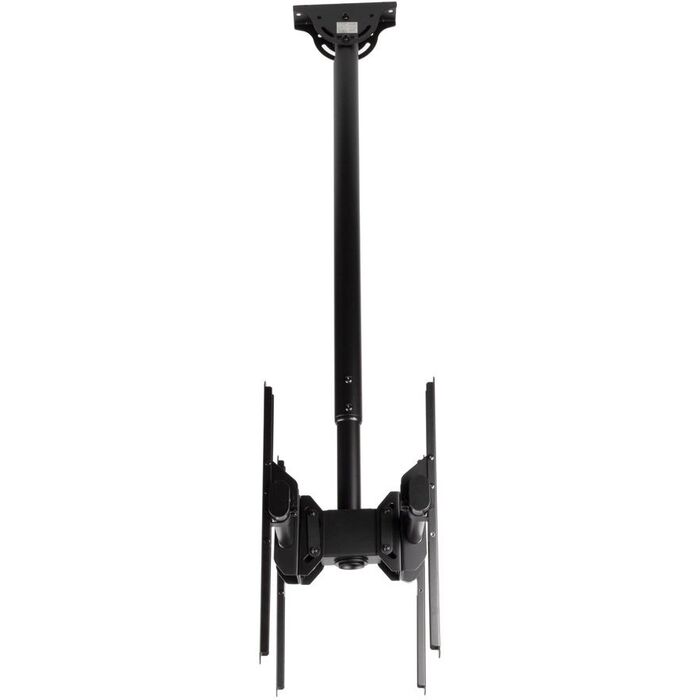 Потолочный кронштейн для LCD/LED телевизоров размером от 26 до 65 дюймов с максимальным весом до 2 x 45 кг с возможностью крепления на наклонный потолок. Надежная стальная конструкция. Регулировка наклона +5 -20 и углом поворота ±180 градусов. Максимальные крепежные размеры 400х400 мм.