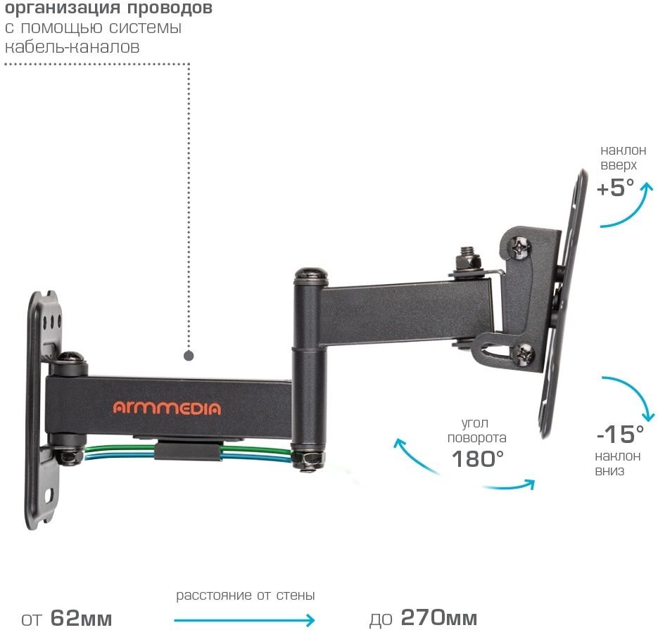 | Способ регулировки | поворотно-выдвижной и наклонный |