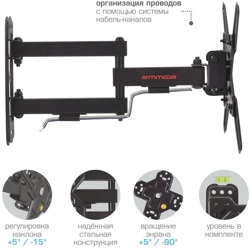 | Подходит для телевизоров c диагональю | 15", 19", 22", 24", 26", 28", 32", 37", 39", 40", 42", 43" |