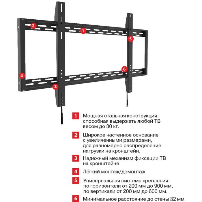 Самый большой кронштейн в линейке ARM MEDIA. Мощная стальная конструкция, способная выдержать любой ТВ весом до 80 кг.